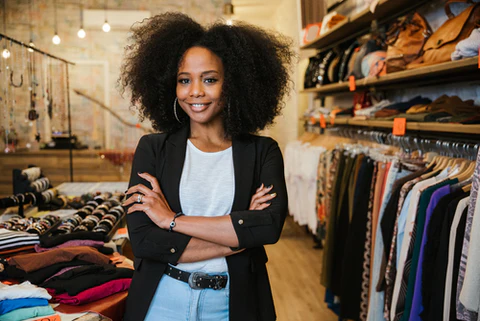 girl with curly hair standing